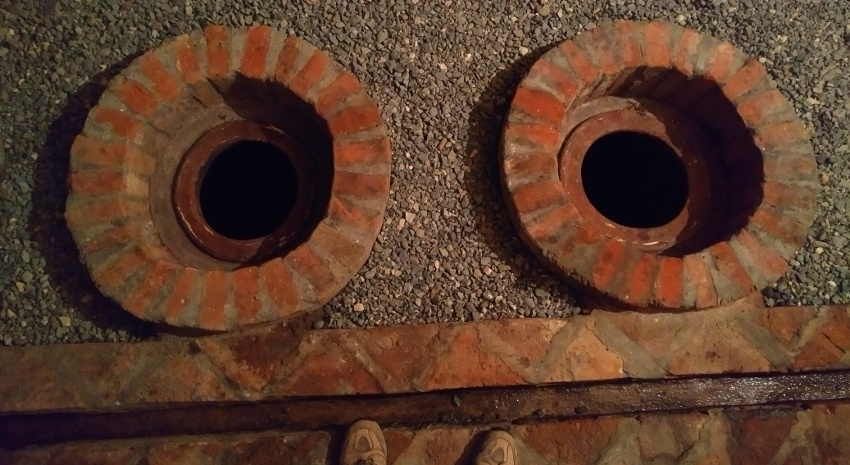 Der Wein reift in tönernen Amphoren, die in den Boden eingegraben sind und oben offen bleiben. Nachdem der Trester entfernt wird, wird dem angehenden Wein 20% Chacha (Tresterbrand) zugefügt. Alles sehr ungewöhnlich, das Ergebnis überzeugte uns jedoch, vor allem der Saperavi, der als die „Königin des georgischen Weins“ gilt und den wir dann zum (sehr guten!) Abendessen tranken.